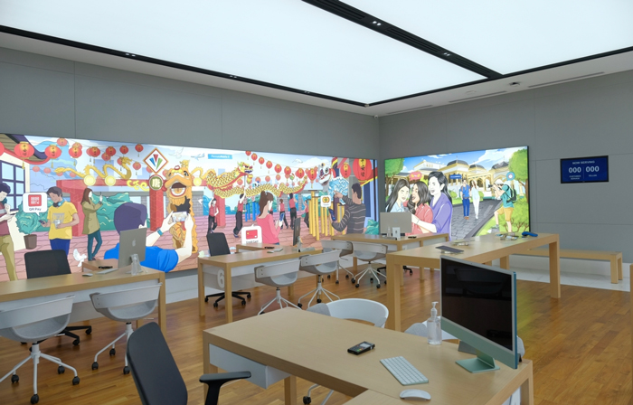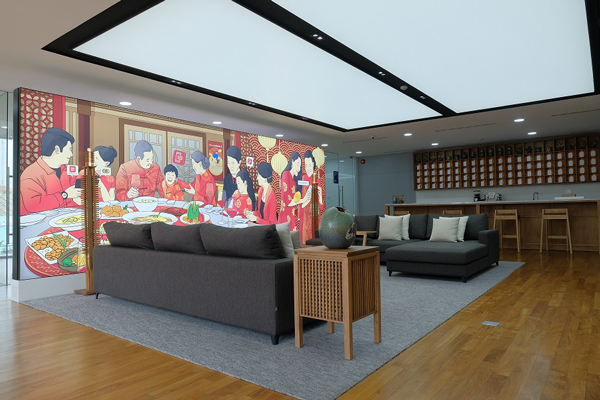 Misalnya, panel di cabang Pluit Kencana, Jakarta menampilkan ilustrasi colorful akan Istana Maimun dan rumah bolon atau rumah batak toba karena warga di sekitarnya banyak yang berasal dari Sumatera utara. Sedangkan jika berkunjung ke cabang Dewi Sartika, Bali, Anda akan disambut oleh gambar angkul-angkul yang ditemani oleh warga lokal memakai baju tradisional Bali.