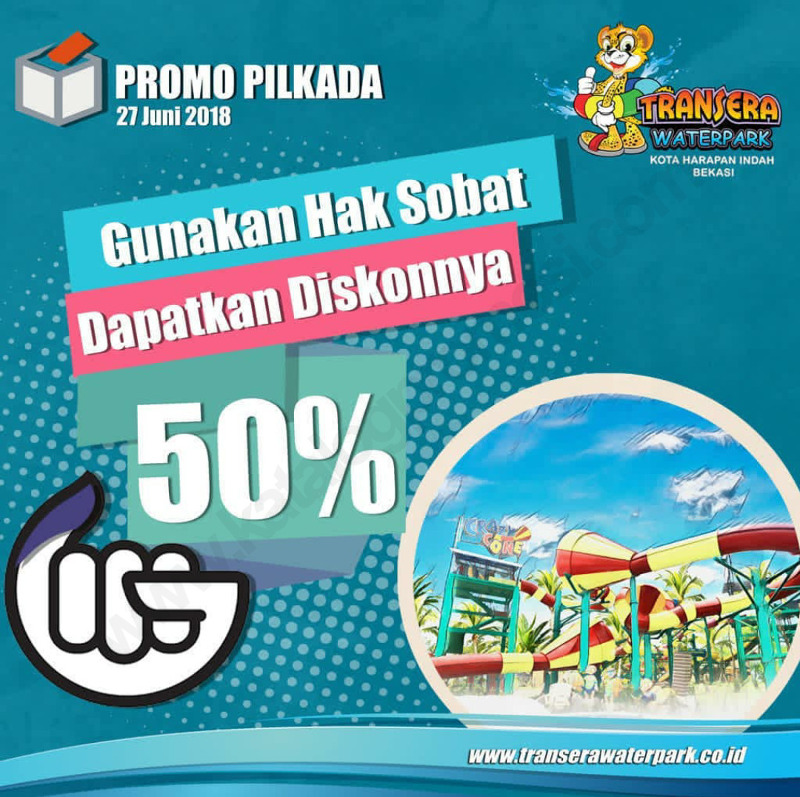 Bagi warga Bekasi dan sekitarnya, ini waktunya mengunjungi Transera Waterpark dan menikmati promo potongan sebesar 50% untuk tiket masuknya. Kunjungi waterpark ini dan tunjukan jari bertinta Anda untuk mendapatkan promo ini.