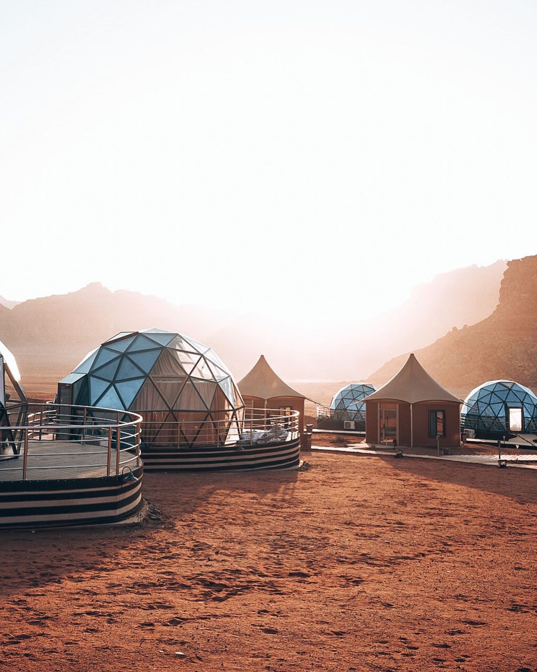 Masih dalam tren glamping, Aicha Luxury Camp memiliki 55 tempat terletak di jantung Wadi Rum. Dikelilingi oleh alam bebas gurun Arab namun masih terlihat mewah karena interior dan dekorasi berwarna kuning, jingga, dan merah terinspirasi dari pasir gurun.Â