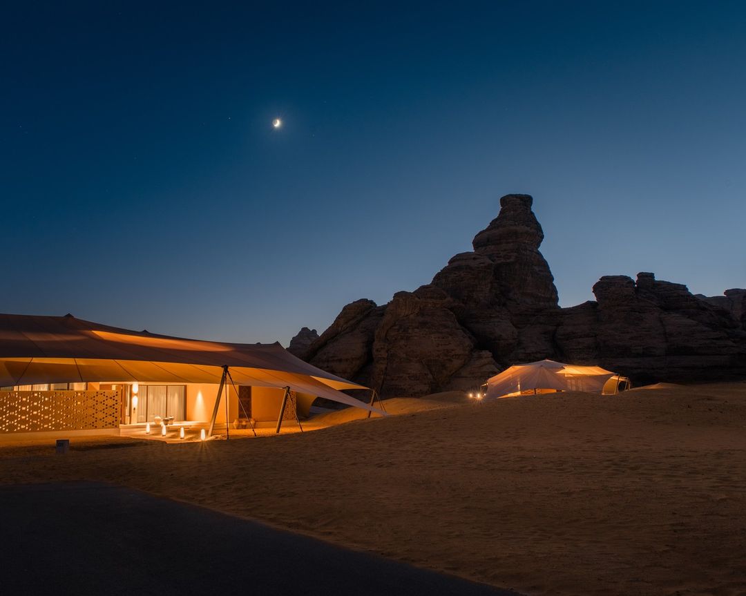 Resort bergaya luxury camp yang terletak dalam lingkungan gurun AlUla di Arab Saudi seolah-olah membawa pengunjung untuk merasakan keheningan dan kedamaian dari bebatuan alam sekitar.Â