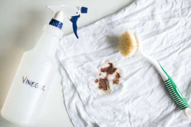 Cuka dapur atau cuka putih yang biasa untuk campuran asam di makanan ini mampu menghilangkan noda kuning di baju putih, dengan dua cara.