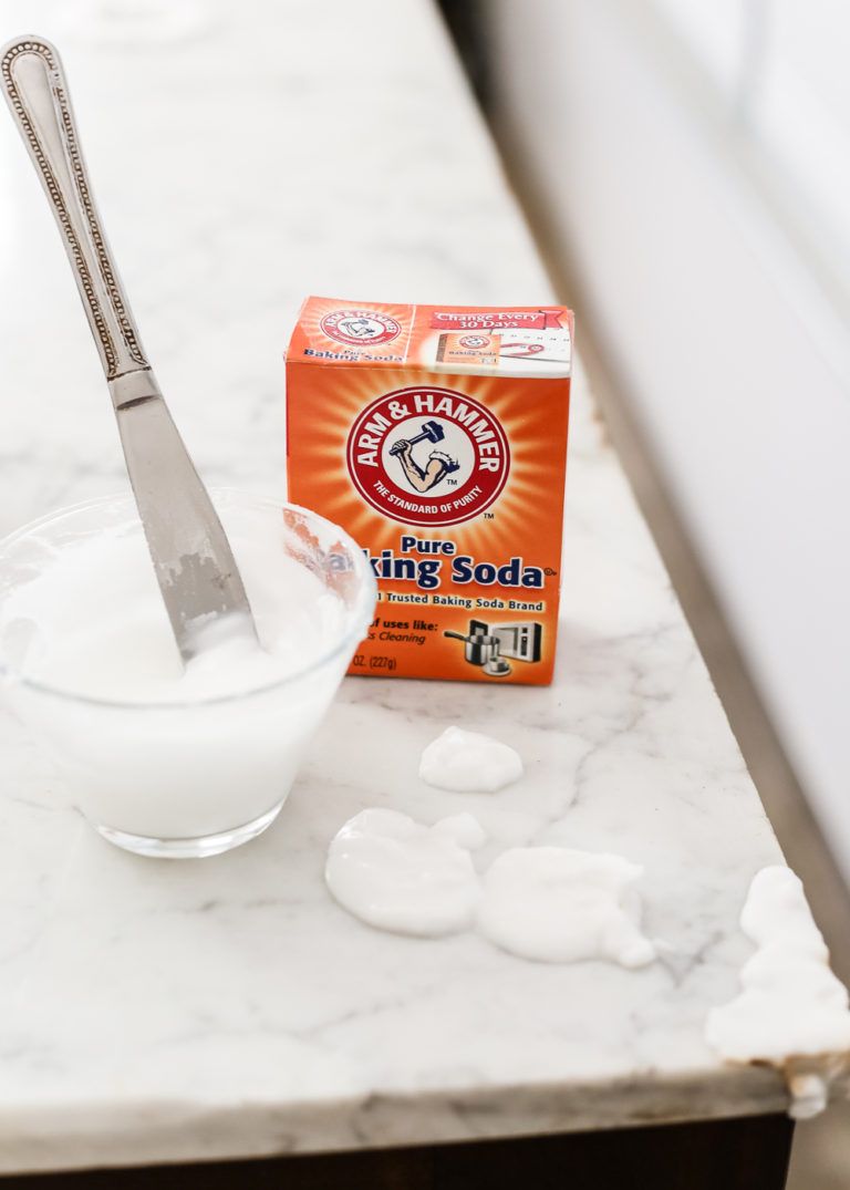 Caranya, larutkan baking soda ke dalam air dan aduk hingga menjadi seperti pasta. Lalu setelah sedikit agak mengental, oleskan pasta baking soda ke permukaan baju yang ada noda. Terakhir, rendam baju ke dalam larutan baking soda dan air panas selama 30 menit.