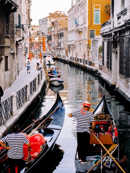 Atau, Anda juga bisa mengunjungi Kota Venice yang dikelilingi oleh kanal-kanal indah dengan tepiannya yang dihiasi bangunan-bangunan dengan gaya yang berbeda, seperti gaya Bizantium, Gothik, Renaisans dan Baroque. Di kota ini, Anda bisa berkeliling kota menggunakan gondola sambil menikmati keindahan dan keunikan bangunan-bangunannya yang menjadi daya tarik tersendiri Kota Venice.