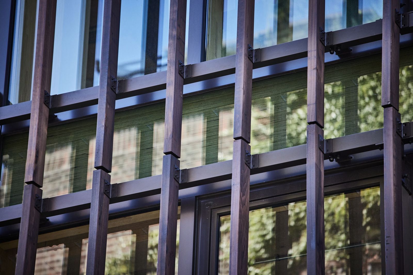 Dibangun dari kayu tulip yang dimodifikasi secara termal dan telah melalui fire testing, kisi-kisi di bangunan ini mengurangi konsumsi energi bangunan secara besar-besaran dengan melindungi zona interior dari penguatan matahari. WTA juga dapat meminimalisir jumlah lapisan surya yang tidak dapat didaur ulang diperlukan untuk melindungi jendela pada akhirnya mengurangi TPA.