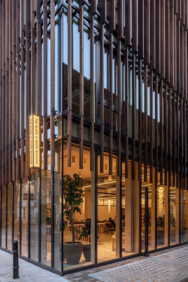 Pada umumnya, bangunan tinggi atau perkantoran terkenal dengan penggunaan material kaca, baja, besi, atau material non-natural lainnya yang sering menghabiskan banyak energi yang tidak dapat diperbaharukan. Maka dari itu, saat dapat menemukan sebuah gedung perkantoran yang diselimuti oleh kisi-kisi bermaterialkan kayu dan mengedepakan konsep sustainability, ini menjadi sebuah pemandangan yang luar biasa. Berlokasi di London, The Black & White Building adalah gedung kantor tertinggi di pusat kota yang menggunakan material kayu.