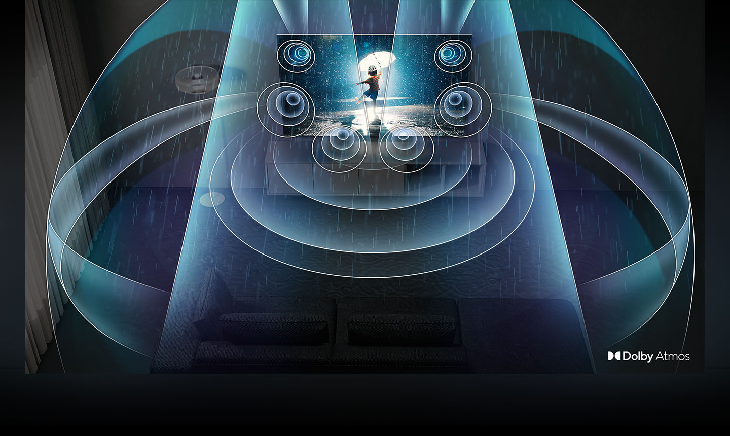 Frame tipis yang mengelilingi Infinity Screen tak hanya berguna sebagai frame namun juga sebagai multi direction speaker yang tersebar di sepanjang pinggir hingga bagian belakang TV. Speaker ini berteknologi Dolby Atmos dan Object Tracking Sound Pro (OTS Pro) yang menciptakan sound yang dinamis mengikuti gerakan objek di dalam layar TV.