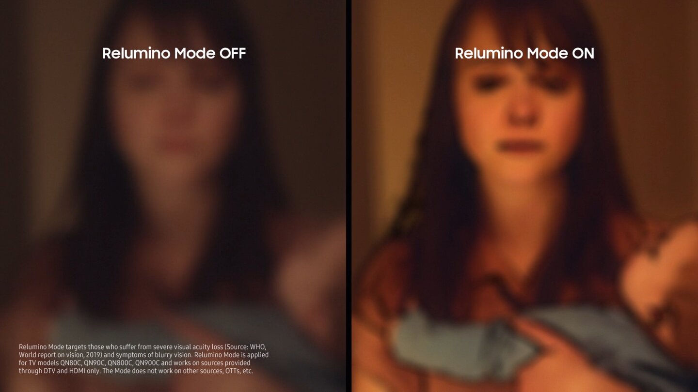Berkat Relumino Mode yang kini tengah dikembangkan dan turut dimiliki Neo Qled 8K, pengguna dengan kemampuan visual kurang bagus tetap bisa menikmati tontonan kesukaannya. Mode ini memproses gambar menjadi output yang menonjolkan beberapa bagian spesifik dalam video. Misalnya saja kontras, warna, dan ketajaman.