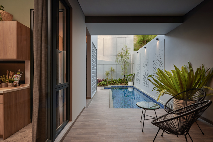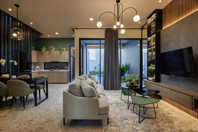 Konsep tersebut perlu dibarengi dengan pertimbangan sirkulasi udara segar demi menciptakan hunian yang sehat. Sebagai landed house, perputaran udara dan cahaya dapat tercipta jika menerapkan bukaan ruang menghadap area luar, yang bisa Anda sulap menjadi taman ataupun swimming pool.