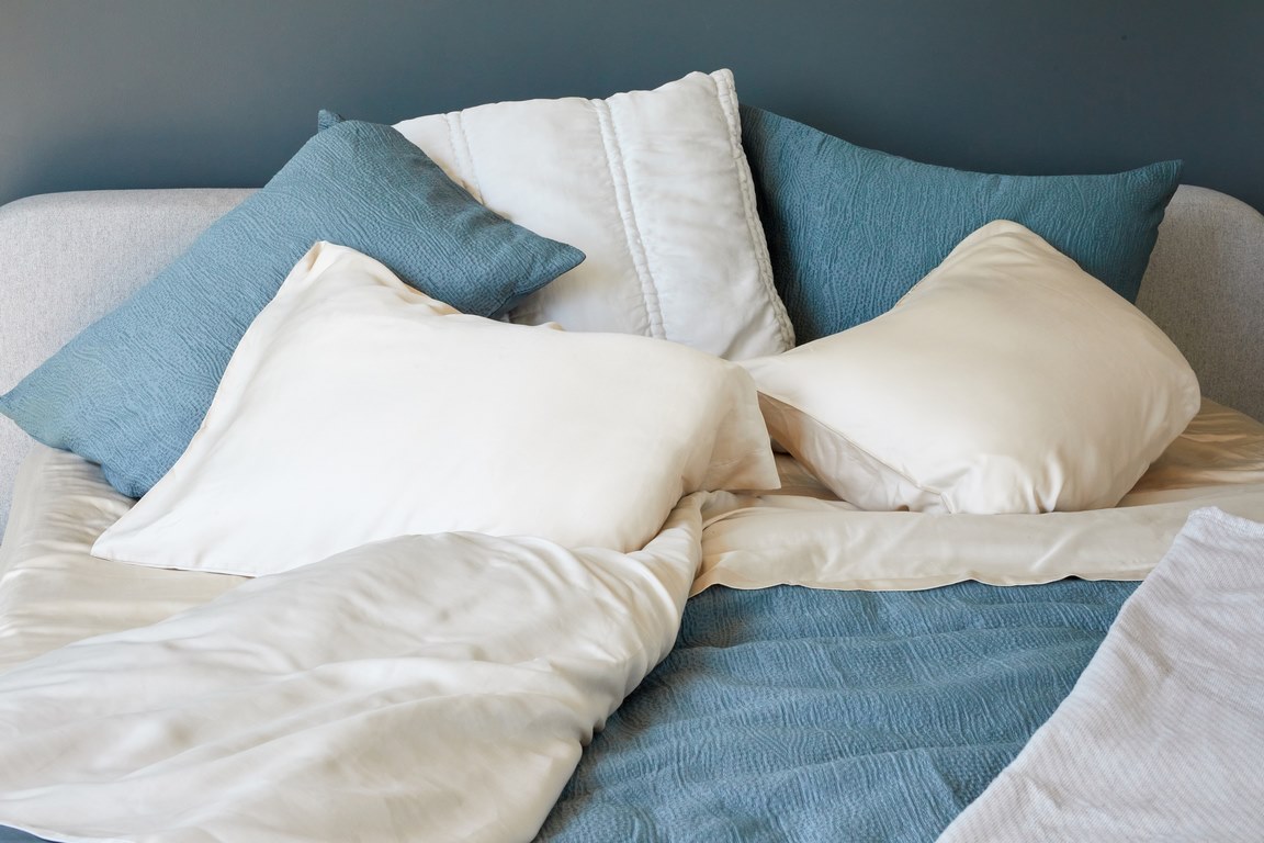 kunci dari tidur yang nyenyak dan berkualitas adalah perlengkapan tidur dan seprai yang fungsional tetapi tetap memperhatikan estetika. Penggunaan tekstil yang ramah lingkungan dengan menyesuaikan palet warna dan pola interior Anda.