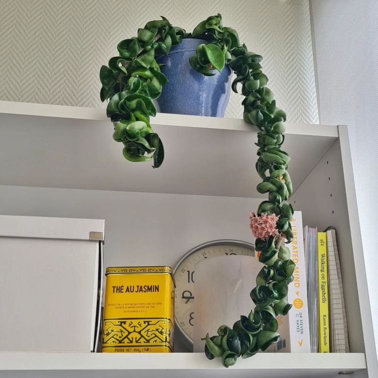 Hindu rope hoya, atau Hoya carnosa compacta, adalah tanaman hias gantung cantik dan unik yang bisa mempercantik interior rumah Anda—dan, tanaman hias ramah pemula! Tanaman hias Hoya carnosa compacta memiliki bentuk daun curly acak-acakan berwarna hijau berkilau, dengan bunganya yang harum dan indah berwarna putih kemerahan—kadang sedikit berwarna pink—berbentuk seperti bintang, yang membuat tanaman hias unik ini semakin menawan.