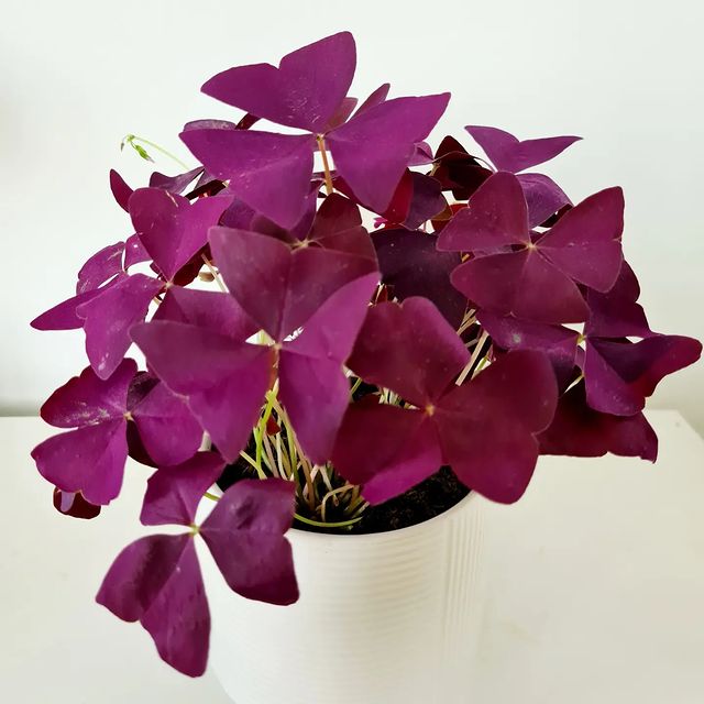 Shamrock ungu, atau juga dikenal dengan bunga kupu-kupu, adalah tanaman hias unik dan langka yang memiliki bentuk daun mirip dengan sayap kupu-kupu berwarna ungu tua—seusai namanya. Tak hanya bentuk daunnya yang unik, tanaman Shamrock ungu juga memiliki keunikan lainnya, yakni daunnya akan menguncup saat malam hari.