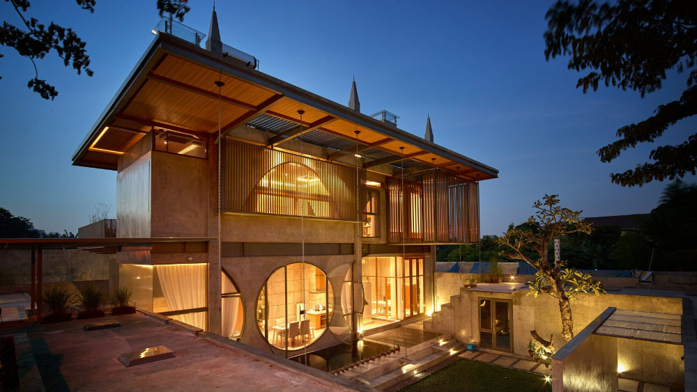 Jendela bundar dan permainan wujud geometris membuat karya ini menarik perhatian atas eksplorasi unik dan menariknya.