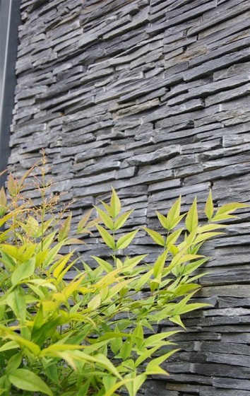 Batu slate adalah jenis batuan sedimen populer lainnya untuk dinding teras rumah. Batu slate terkenal akan ketahannya yang sangat luar biasa. Bahkan disebut-sebut bisa tahan hingga beberapa dekade, tanpa memerlukan perawatan khusus! Batu alam ini memiliki aksen alami yang menarik dengan cenderung memiliki warna gelap, yakni hitam keabu-abuan dan terkadang sedikit kecokelatan. Menggunakan batu alam ini untuk dinding teras rumah bisa menciptakan visual yang menakjubkan.Â