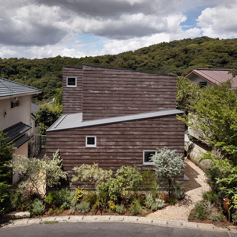Merancang agar tidak terlihat seperti rumah biasanya Yamanouchi membentuk arsitektur rumah ini dengan dua volume yang berbentuk L yang saling terhubung dengan atap yang berbeda.