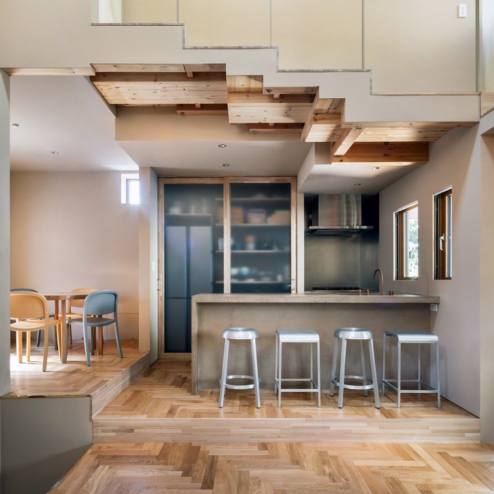 Desain tangga unik yang menjadi atrium pusat dengan ketinggian yang memenuhi rumah, dirancang dengan struktur kantilever yang terinspirasi dari Nankin Tamasudare, layar yang terbuat dari anyaman bambu kemudian dianyam secara longgar untuk pertunjukan jalanan tradisional Jepang.