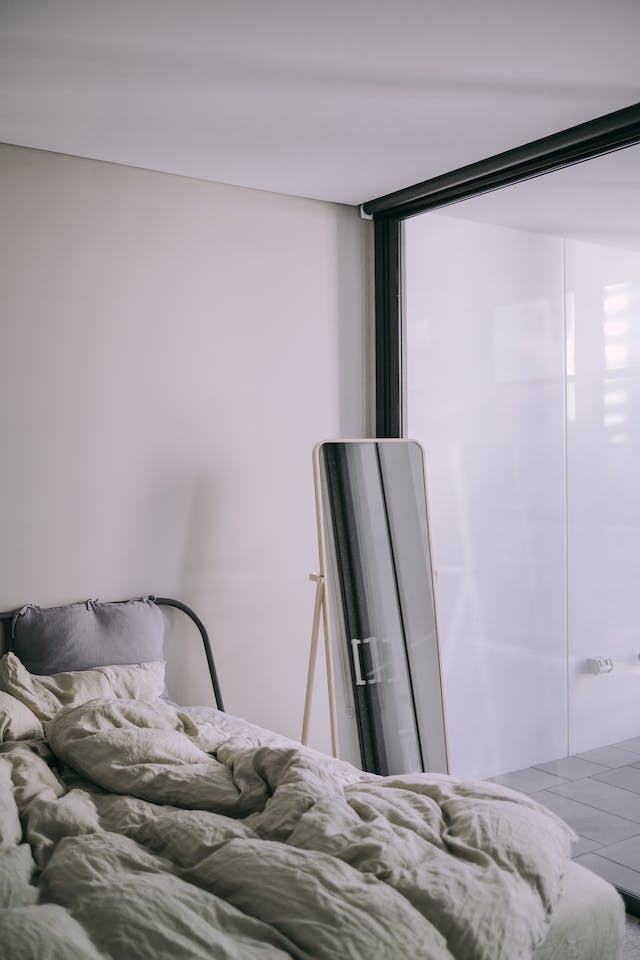 Tips menata kamar tidur yang sempit berikutnya yaitu dengan memasang cermin, yang bisa membuat kamar tidur kecil terasa lebih besar. Ini karena cermin dapat menarik cahaya masuk ke dalam ruangan, membuat ruangan terasa lebih cerah, terang, dan terkesan luas.Â
