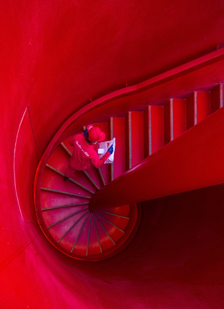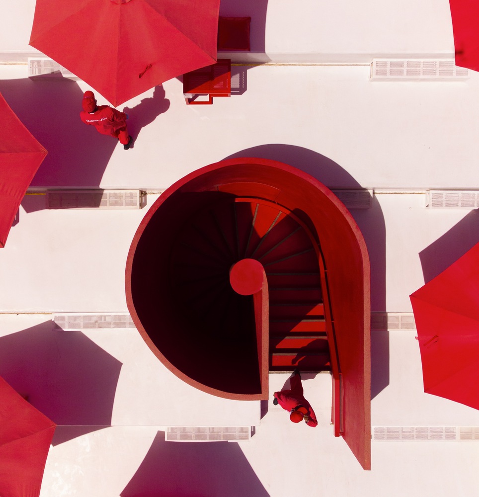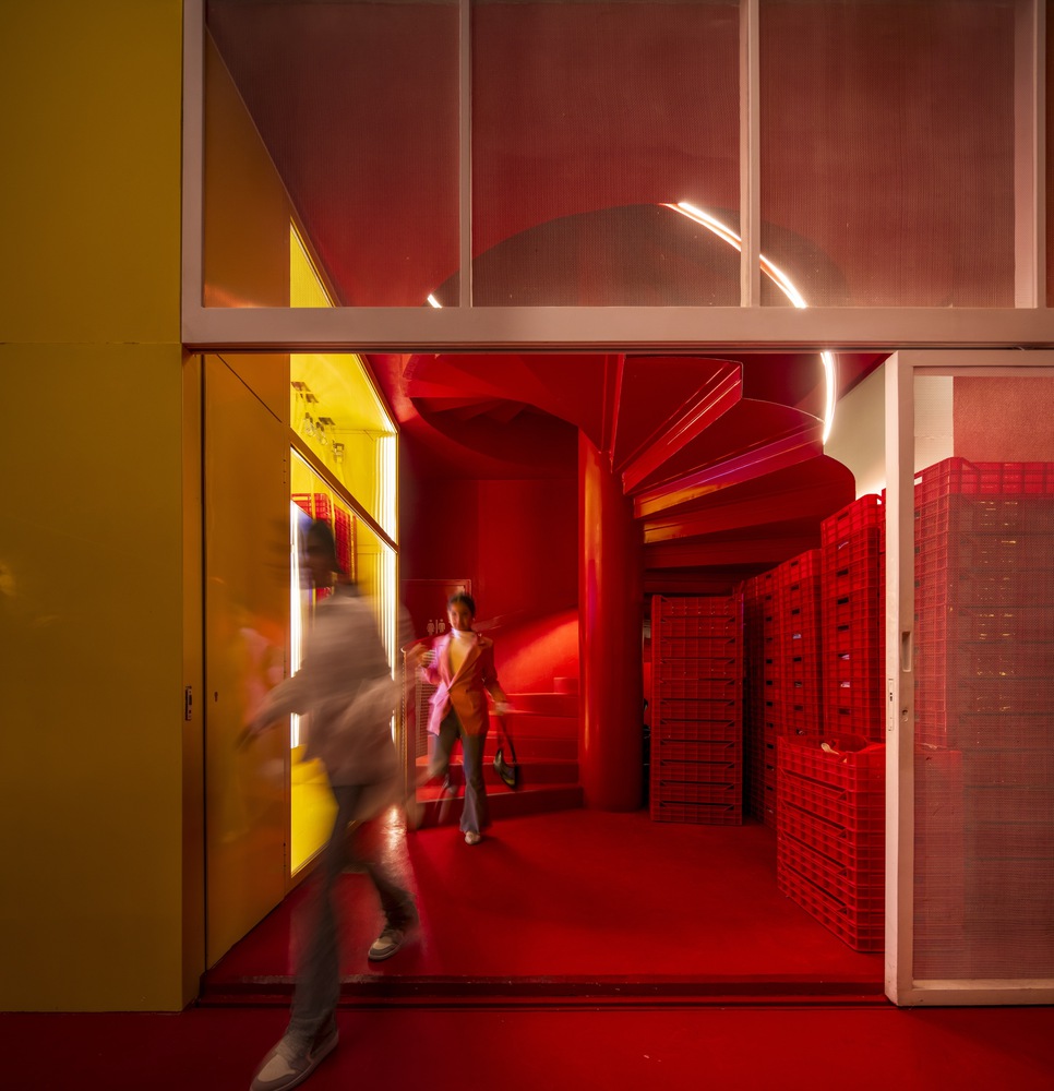 Fokus pada bangunan ini adalah elemen vertical utama restoran, terdapat tangga spiral dengan warna merah berani ini, bagi TAEP/AAP tangga spiral ini menggambarkan arsitek sebagai “lingkaran” penghubung interior serta eksterior restoran.