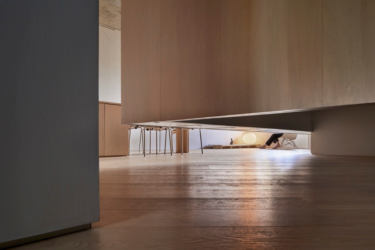 Celah sebesar 350mm yang diberikan di bawah rak, dapur, dan wastafel memiliki fungsi yang beragam. Untuk manusia, celah ini dapat berfungsi sebagai sekat sehingga bisa merasakan ke dalaman ruang. Sedangkan untuk kucing, dapat berfungsi sebagai tempat untuk bersembunyi ataupun tidur.