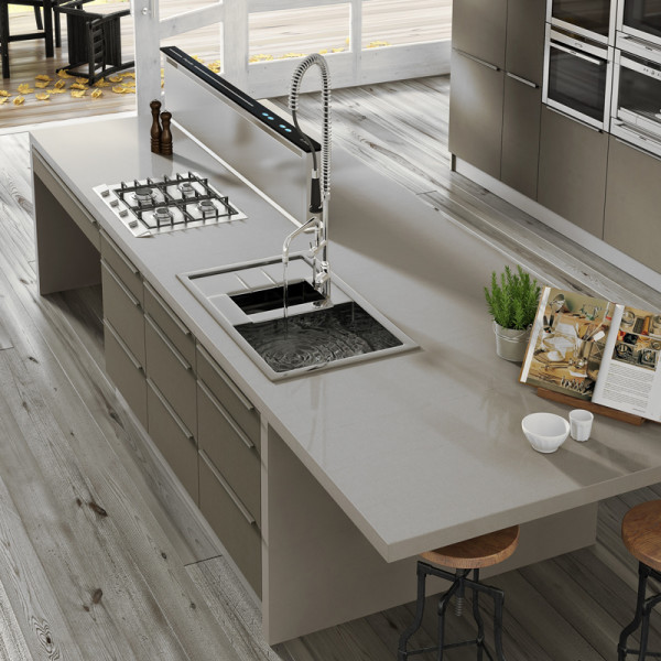 Berbahan 93% quartz stone alami, koleksi Silestone dari Cosentino tampak kokoh, anti gores, serta tahan noda dan asam. Koleksi ini adalah worktop pertama dan satu-satunya quartz dengan perlindungan anti bakteri.