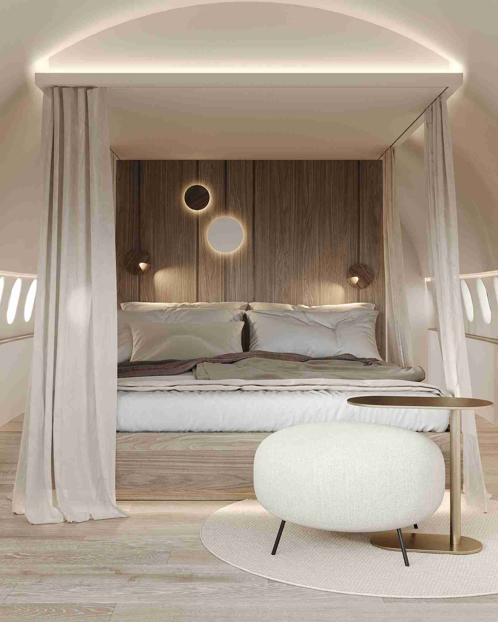 Dalam merancang Private Jet Villa ini, Geometri Studio tidak hanya menata ulang ruang pesawat namun juga menciptakan area penginapan yang unik dan fungsional dengan menikmati atmosfer kenyamanan serta kemewahan secara bersamaan.