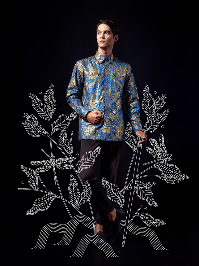 Iwan Tirta Private Collection mempersembahkan motif Garuda Serakit secara istimewa. Terdapat 90 ekor dan sayap Garuda yang digabungkan dengan sembilan ilustrasi Mickey yang tersembunyi pada setiap kain.