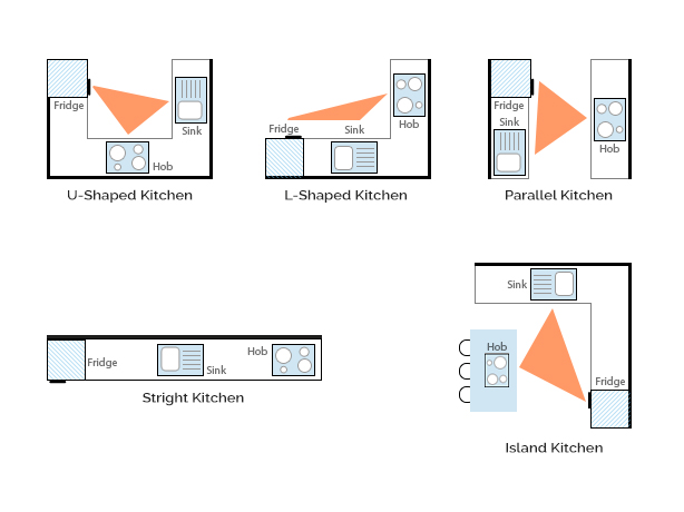 Kitchen work triangle adalah teori peletakan kompor, sink, dan kulkas yang telah dipercayai sangat efisien dalam proses memasak.