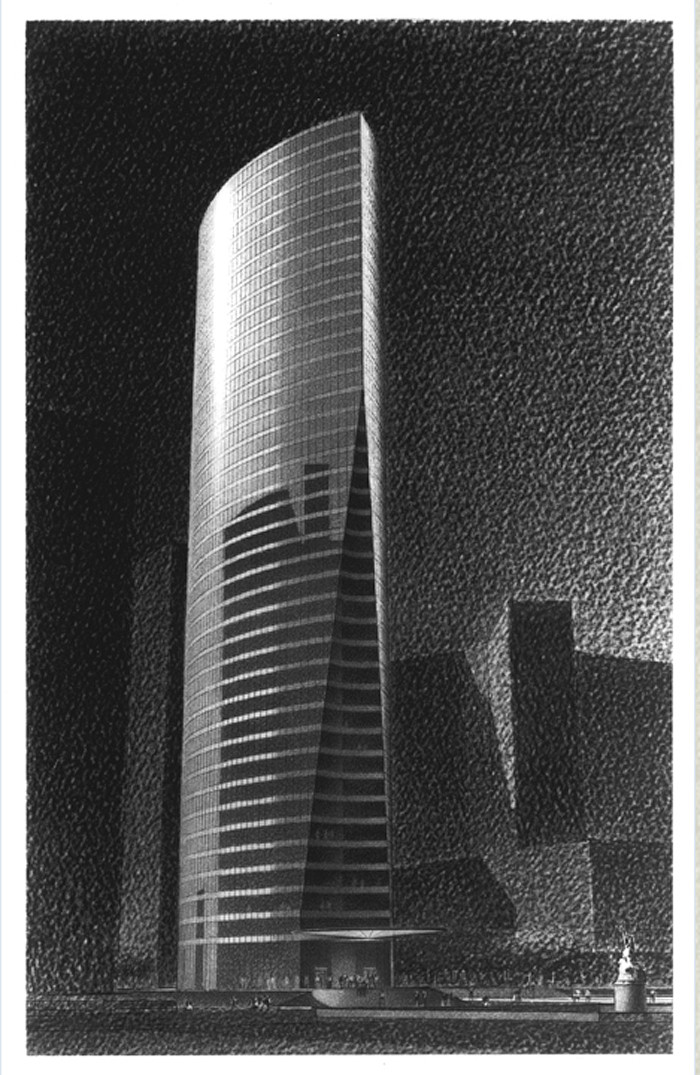 Sketsa tangan Steve (1995): Hines France office tower yang memenangkan Hugh Ferriss Memorial Prize