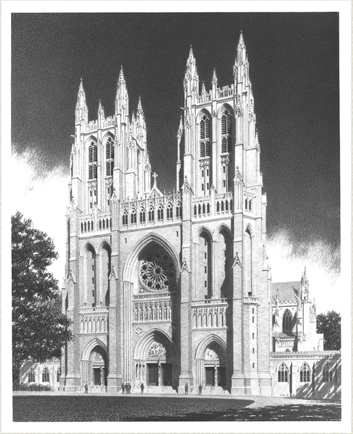 Sketsa tangan Steve: Washington Cathedral pada tahun 1981. Bangunan karya Philip Hubert Frohman ini selesai didirikan tahun 1993