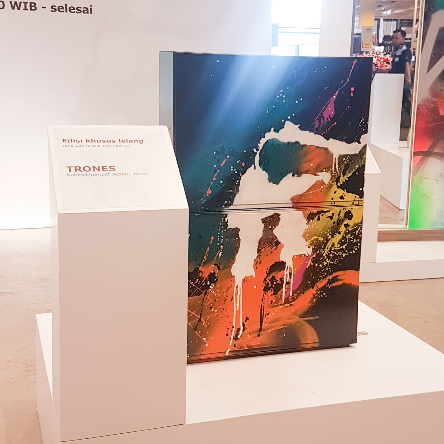Ikea menyediakan lima produknya yang telah dikustomisasi secara terbatas oleh Never Too Lavish, dan dilakukan lelang secara online dan offline.Barang-barang yang dilelang meliputi, kursi, lemari hingga kabinet sepatu. Setiap produk diberikan sentuhan kreasi menarik, agar melahirkan sebuah karya yang unik.