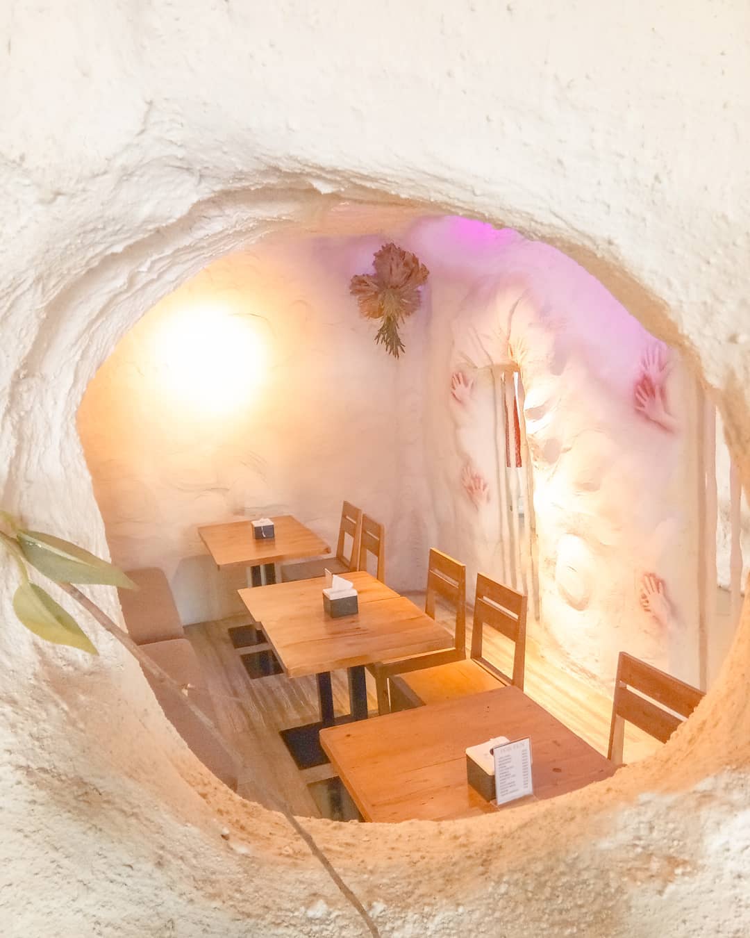 Goldstar 360 di Sukajadi memberikan pengalaman hangout layaknya berada di dalam gua. Dekorasi dinding pada interior gua dibuat persis seperti tempat tinggal manusia purba dengan gambar tangan yang biasa ditemukan di dalam film atau dokumenter. Tidak hanya gua, resto ini juga memiliki area rooftop yang sejuk.