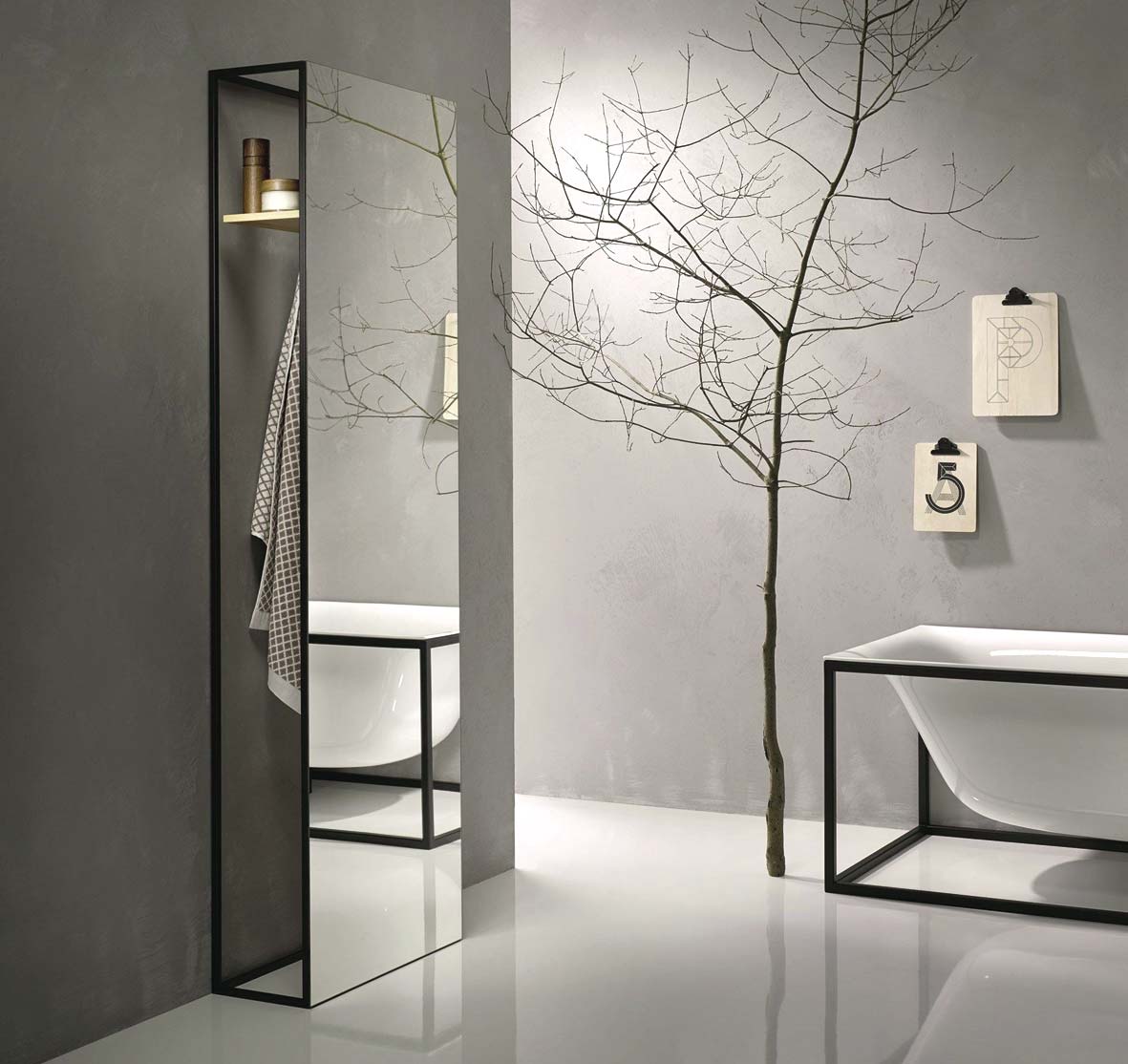 Bentuk lekukan free-standing bath tub dan washbasin dari Bettelux Shape terlihat cantik saat terekspos secara transparan dalam bingkai baja yang dirancang dengan sudut-sudut yang presisi. Desainer interior dan produk asal Jerman, Tesseraux + Partner mengoptimalkan kekuatan material baja pada seri ini, sehingga struktur pendukung dapat diminimalisir namun terlihat elegan.