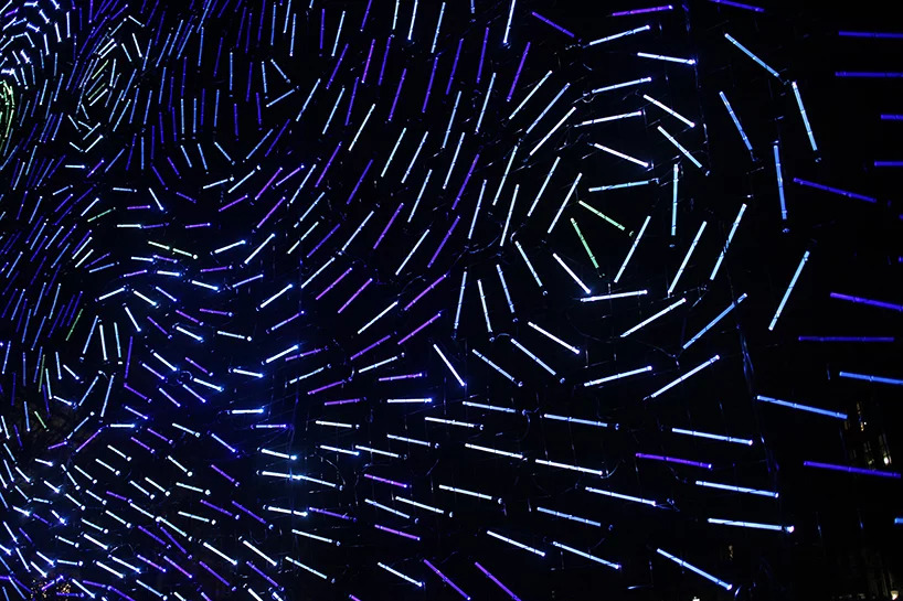 Dilansir dari Dezeen, dua seniman tersebut merangkai 1.400 tabung akrilik yang berpendar oleh LED berukuran kecil sehingga menyerupai lukisan monumental dari Vincent Van Gogh, yakni Starry Night.