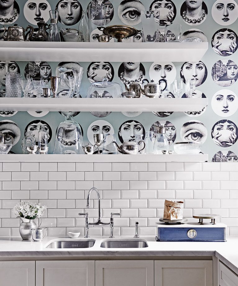 Selain penyegaran pada furnitur, pada area dinding Anda dapat mengaplikasikan wallpaper. Motif yang beragam, serta pemasangan yang cepat menjadi keunggulan dari wallpaper. Karena wallpaper berbahan kertas, sebaiknya aplikasikan pada area dapur yang kering, seperti rak piring atau ruang penyimpanan terbuka
