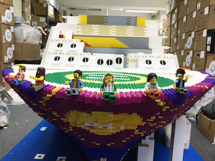 Kapal pesiar Lego tersebut dibangun menggunakan lebih dari 2,5 juta blok Lego, dengan lebih dari 1.000 boneka lego sebagai penumpang, lengkap dengan area playground, swimming pool, hingga shopping mall.