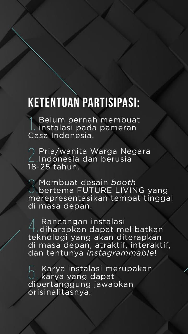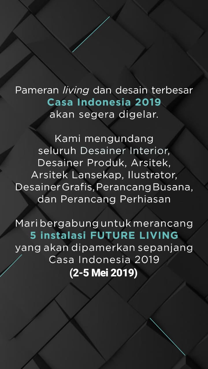 Mari bergabung untuk merancang 5 instalasi FUTURE LIVING yang akan dipamerkan sepanjang Casa Indonesia 2019