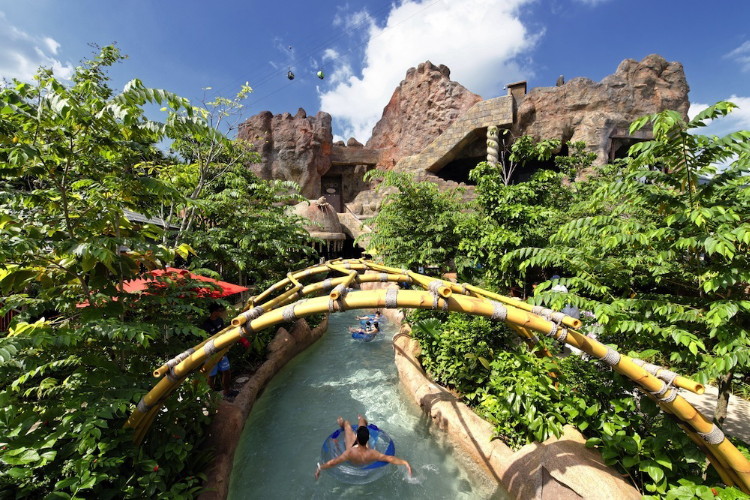 Cuaca Singapura yang panas perlu disandingkan dengan bermain air yang seru di Adventure Cove Waterpark. Bagi yang membawa anak-anak, Anda bisa mencoba Adventure River. Sebuah kolam santai yang melintasi 14 habitat seperti gua, taman hutan yang rimbun, dan terowongan bawah air dengan ikan yang berenang di atas dan sekitar Anda.