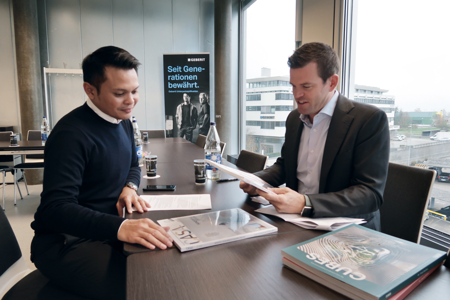 Prastia Putra selaku Managing Editor CASA Indonesia berdiskusi bersama Dr. Martin Baumüller selaku Head of the Group Division Marketing & Brands dGeberit.