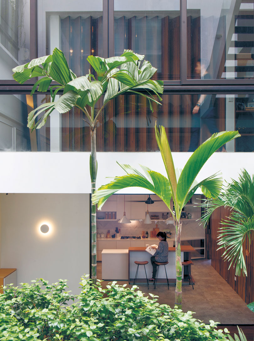 Karena terbagi-bagi ke dalam enam level, olahan interior hunian ini harus menjauhkan kesan sempit dan berat yang rentan terjadi pada split level house pada umunya. Baik fungsi, estetika, hingga pengalaman setiap pengguna ruang tetap dioptimalisasi tanpa menyampingkan faktor kenyamanan.