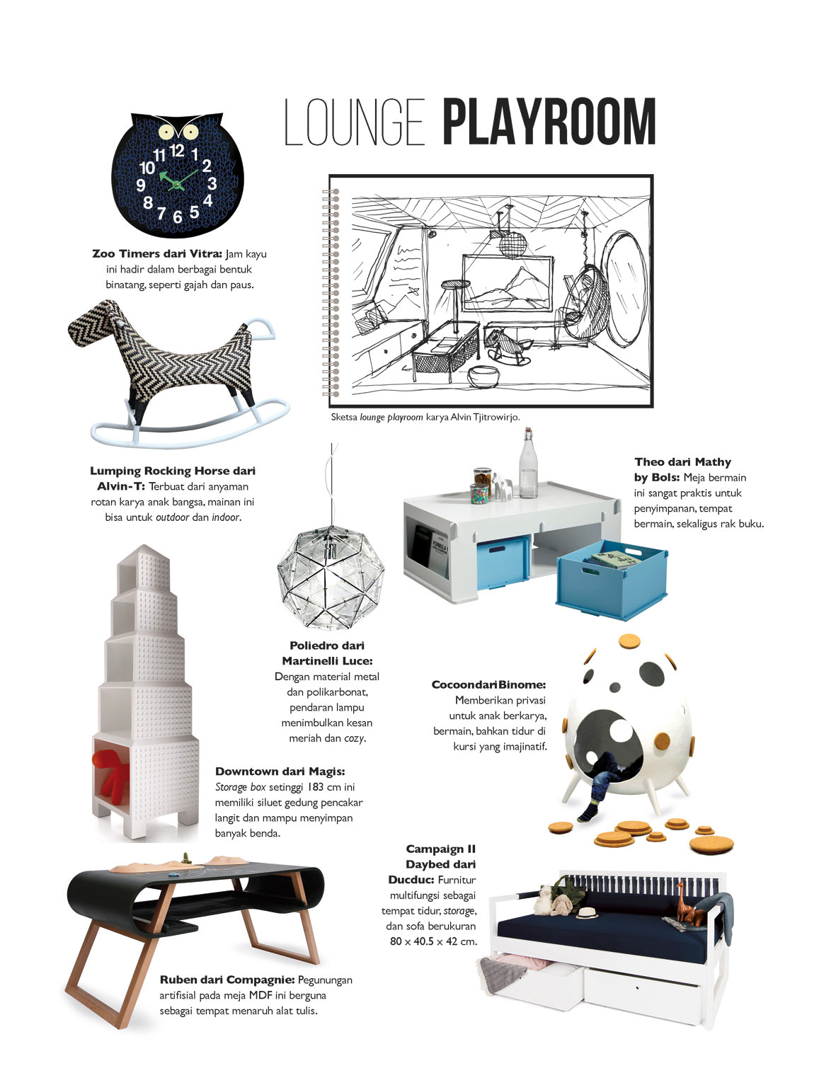 Dengan jadwal yang padat, para selebriti ini tetap menaruh prioritas bagi buah hatinya. Bersama CASA Indonesia, empat selebriti dan desainer Indonesia merancang sudut kamar bermain, belajar, tidur, dan dressing room untuk si kecil. Berangkat dari kesukaan mereka, sketsa dan furnitur di bawah ini bisa menjadi inspirasi.